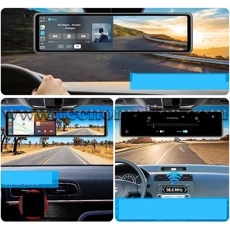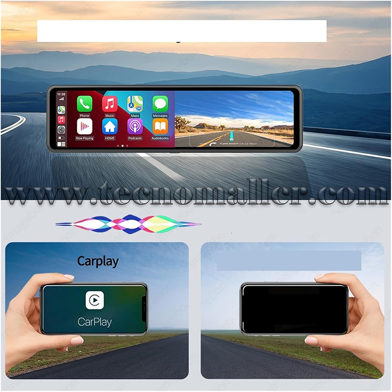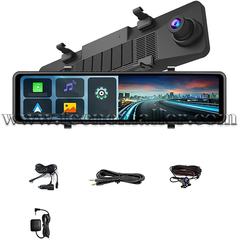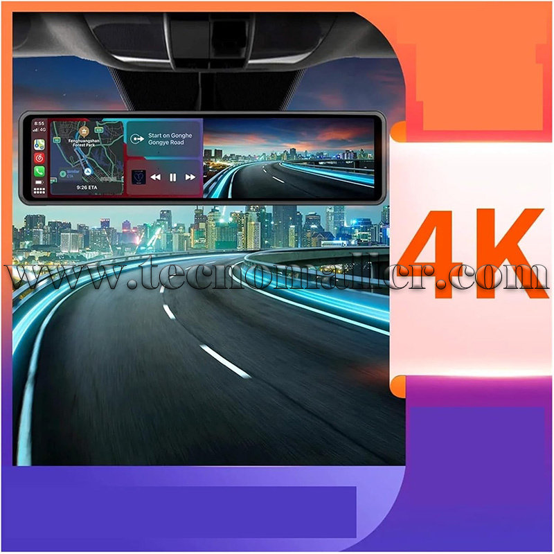 Espejo retrovisor con pantalla táctil 12" compatible Carplay/Android Auto y Dash Cam 4K 0GB frontal y trasera