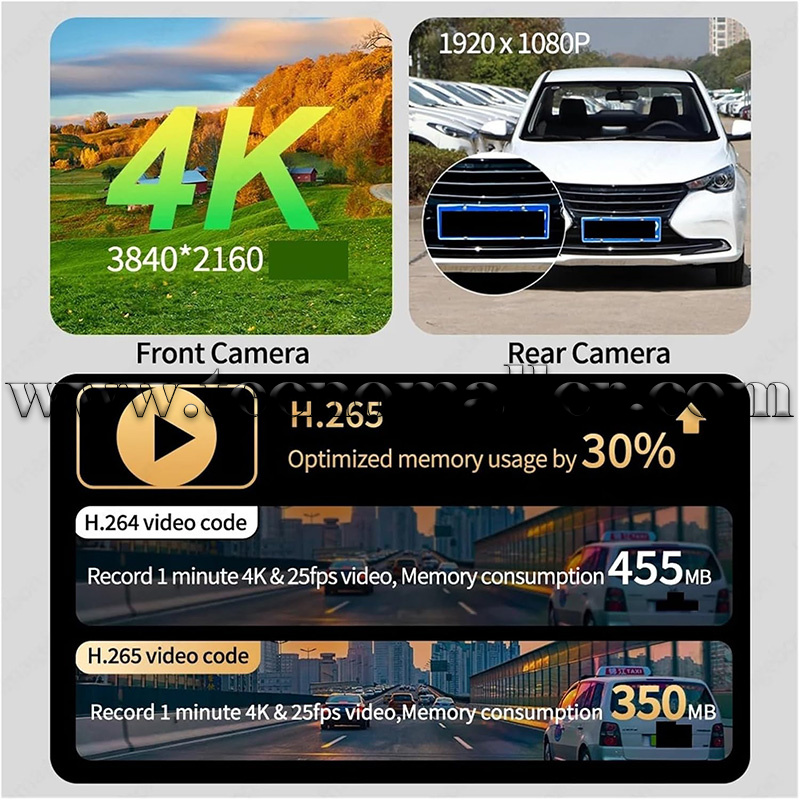 Modo de estacionamiento las 24 horas: la cámara del tablero cambia automáticamente al modo de estacionamiento cuando estacionas y apagas el motor. Con función de grabación de lapso de tiempo, graba continuamente con bajo consumo de energía y baja velocidad de fotogramas para proporcionar protección para todo tipo de clima para tu automóvil.
