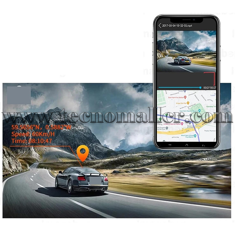 INCLUYE: Espejo retrovisor, Cámara de reversa, Adaptador de corriente USB C de cigarrera, GPS, Cable Auxiliar de audio y sujetadores al retrovisor existente.