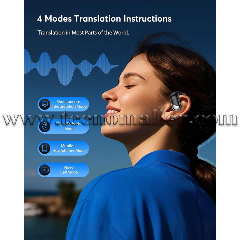 Auriculares Bluetooth para traducción en tiempo real AI 3 en 1 multilingüe con estuche de carga