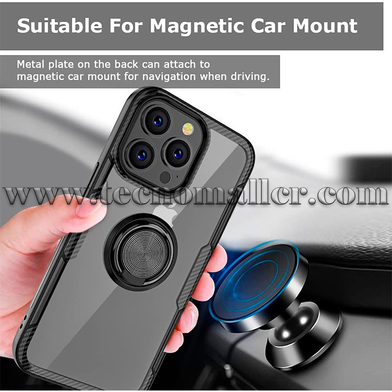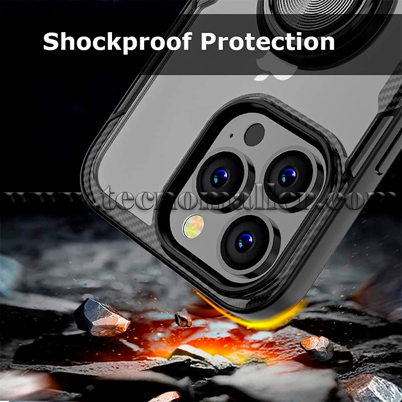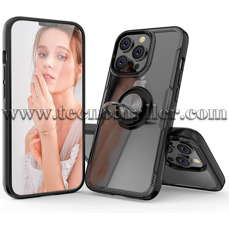 iPhone 13 Pro Max estuche policarbonato transparente y fibra de carbono con anillo magnetico