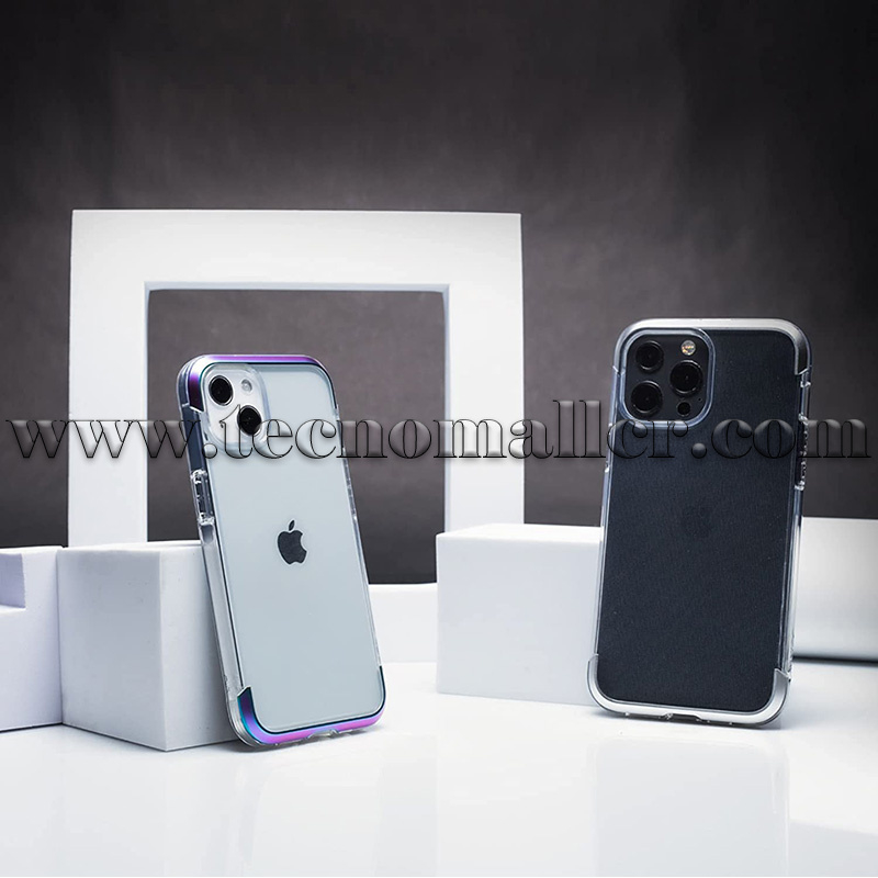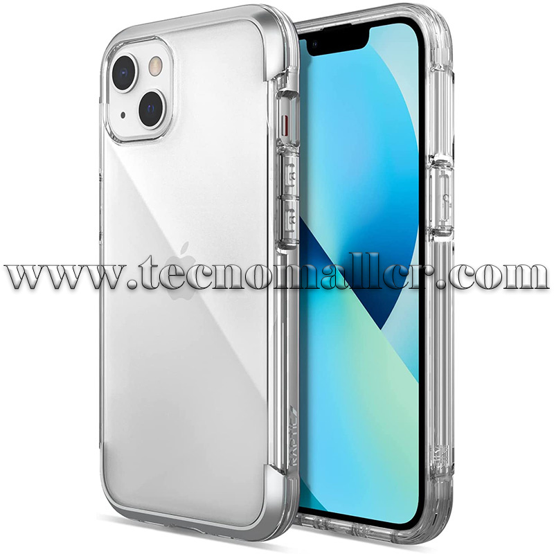 iPhone 13/14/15 estuche Raptic Air antigolpes transparente con bumper de aluminio gris