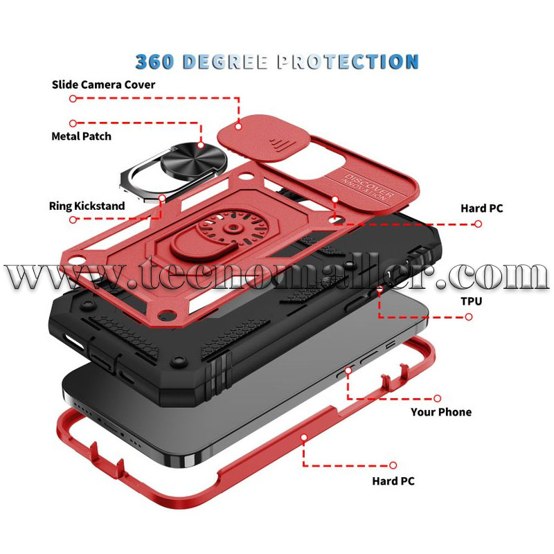 iPhone 13/14/15 estuche antigolpes 3 en 1 con marco, sopore y anillo