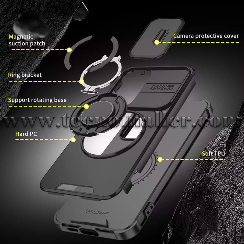 Samsung Galaxy S23+ estuche antigolpes con protector de cámara y anillo compatible Magsafe
