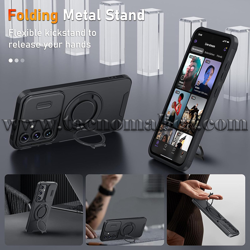 Soporte magnético para anillo: Esta funda con soporte magnético para anillo ofrece dos modos de soporte: vertical y horizontal, lo que te ayuda a tener las manos libres al ver páginas web y videos. También se puede conectar a un soporte magnético para coche (no incluye el soporte magnético para coche).