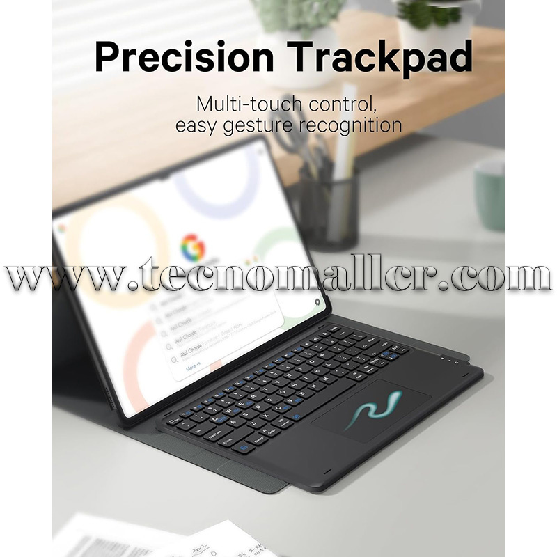 Panel táctil de precisión avanzada: mejore su experiencia de navegación con el panel táctil inteligente integrado en nuestra funda de teclado. Diseñado para el Galaxy Tab, este panel táctil admite controles multigestos, lo que permite realizar múltiples tareas rápidas y eficientes. Navega, cambia de aplicaciones y administra tareas con una facilidad y velocidad sin precedentes, lo que hace que tu tableta use más fluida y productiva.