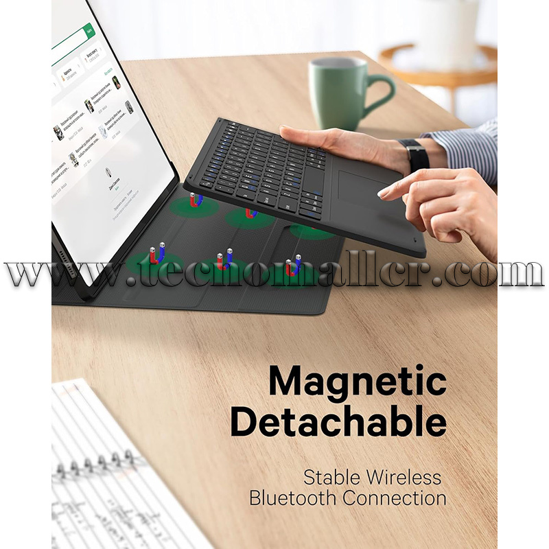 Teclado magnético desmontable: Experimente la fusión perfecta de flexibilidad y funcionalidad con nuestro teclado Bluetooth elegante y ligero para el Galaxy Tab S10. Su diseño magnético garantiza una fijación segura y estable al tiempo que ofrece la versatilidad de posicionamiento personalizable. Transforma sin esfuerzo tu tableta en una mini computadora portátil, mejorando tu productividad y experiencia de usuario.