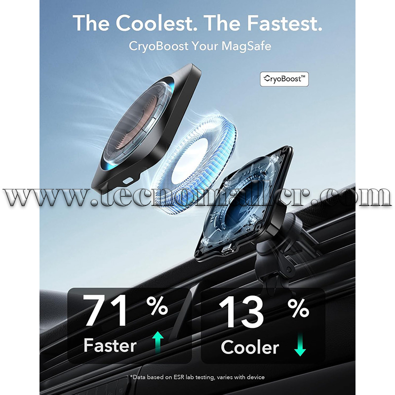 Base/Soporte ESR QI2 cargador inalámbrico rápido para carro con Cryoboost de 15W magnético compatible MagSafe
