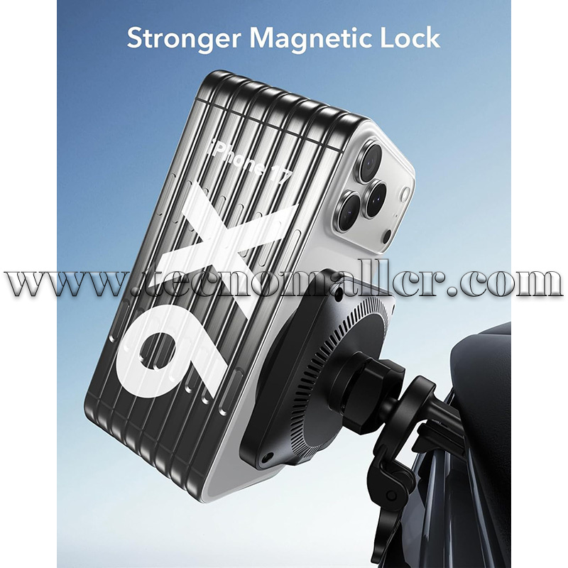 Fuerte bloqueo magnético: potente anillo de imanes con 0.06 oz de fuerza de sujeción que mantiene tu teléfono en su lugar de forma segura, incluso en carreteras con baches; se recomienda una funda oficial MagSafe o funda magnética ESR para terrenos irregulares