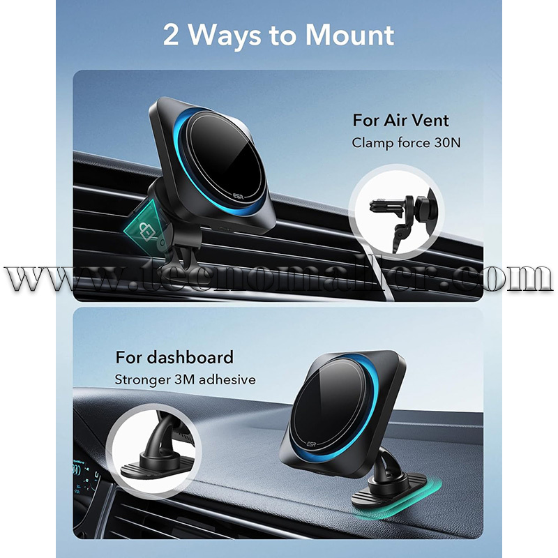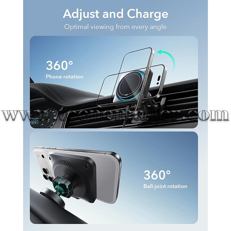 Monta a tu manera: elige montarlo en la rejilla de ventilación o tablero de instrumentos de tu coche; fuerte soporte de ventilación y adhesivo de alta calidad que proporcionan una mayor estabilidad