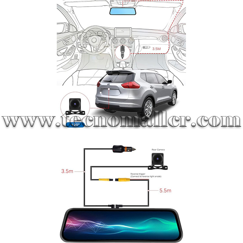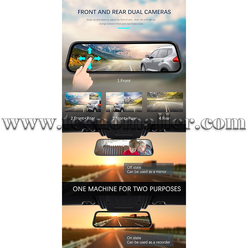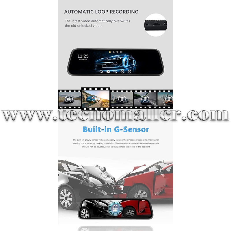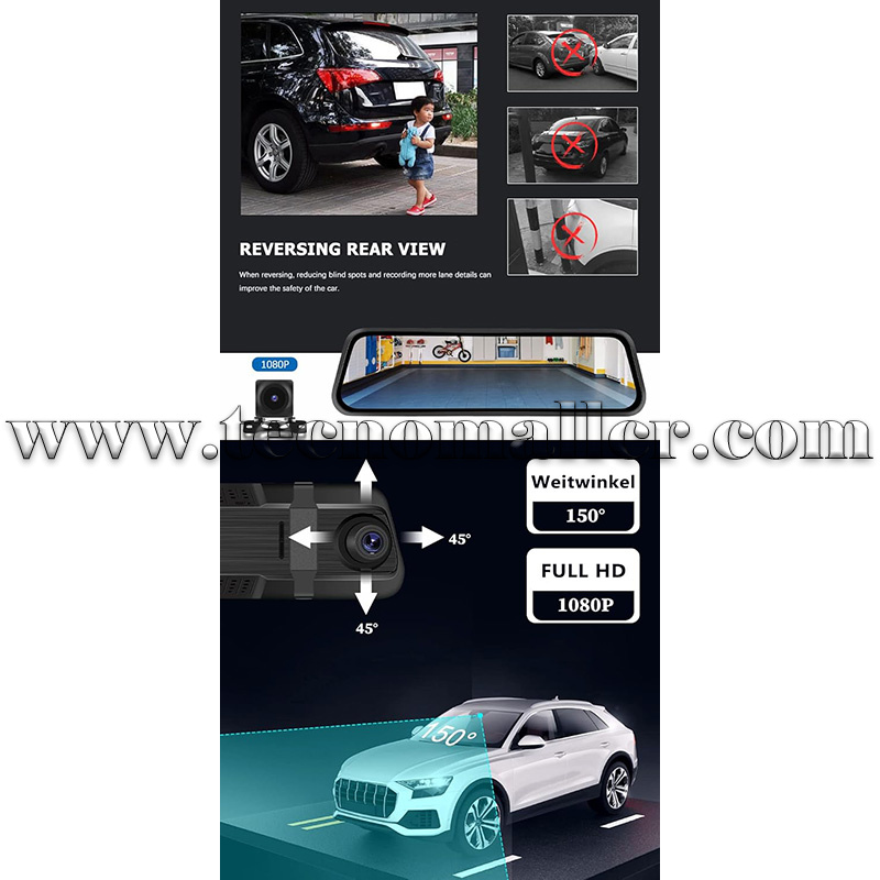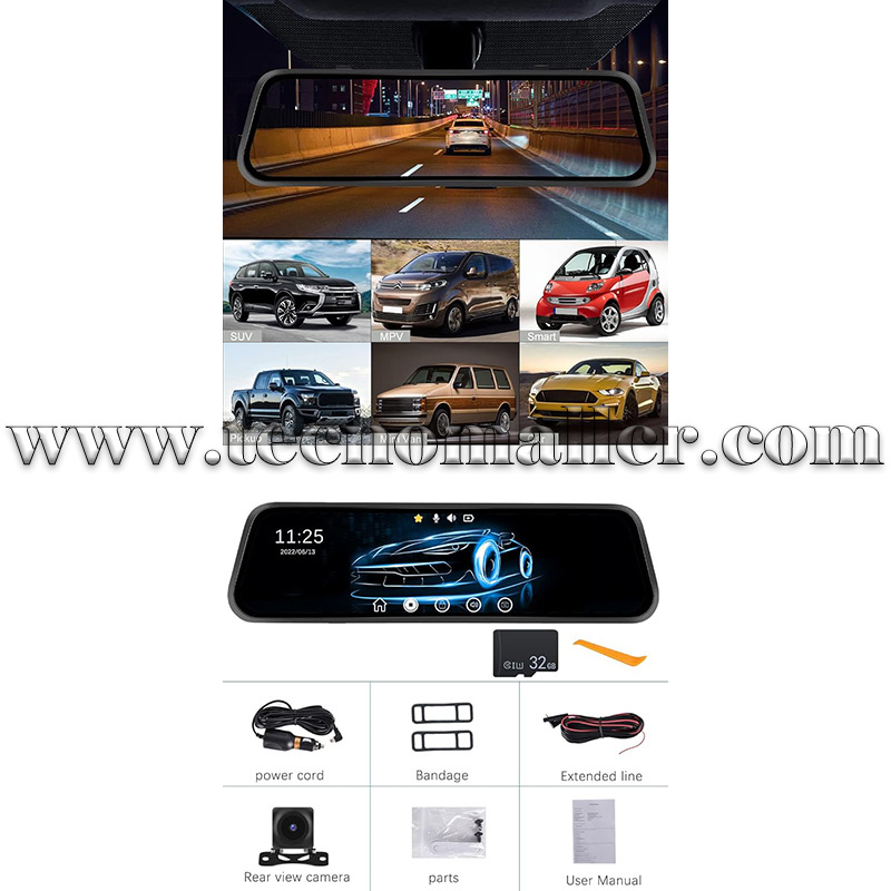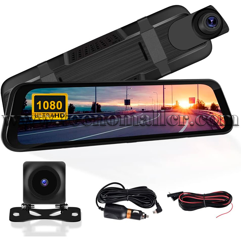 Espejo retrovisor con pantalla táctil de 10" y Dash Cam 1080P cámara frontal y trasera con 32GB