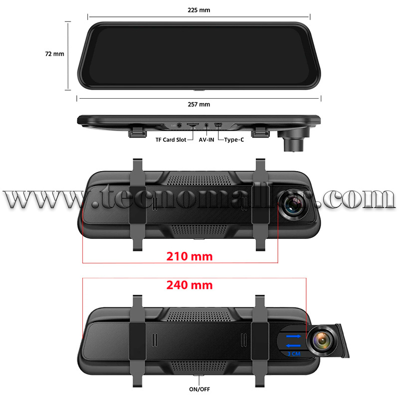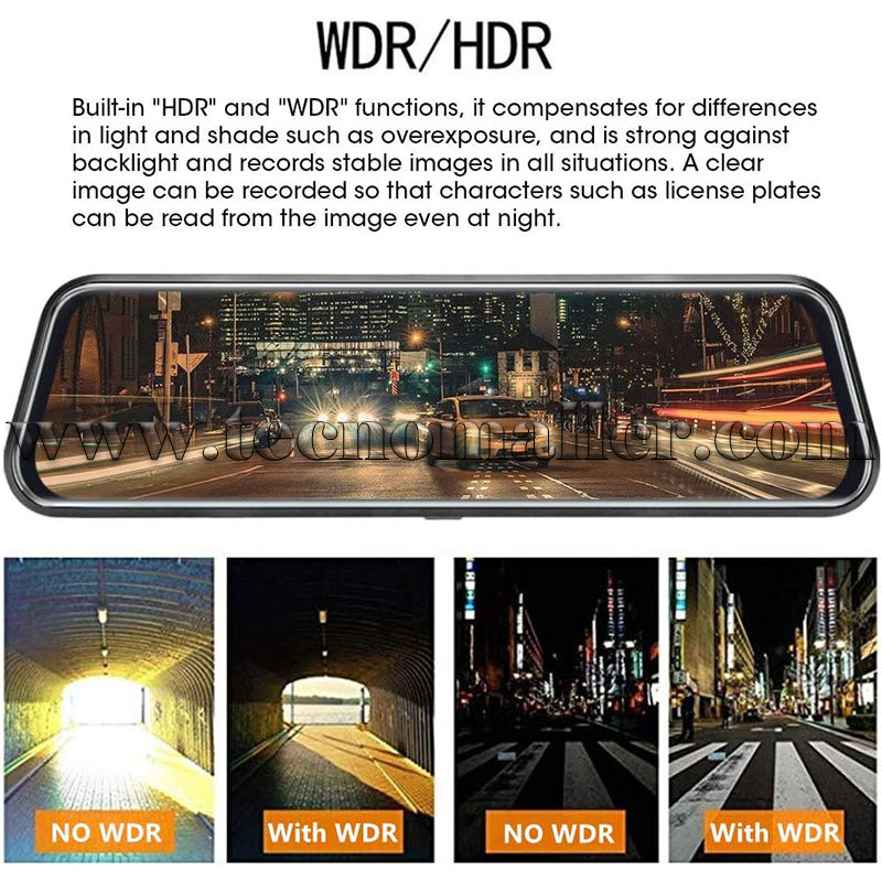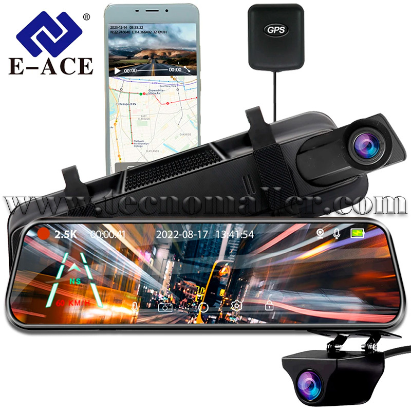 Espejo retrovisor con pantalla táctil de 10" y Dash Cam 2.5K cámara frontal y trasera con 0GB