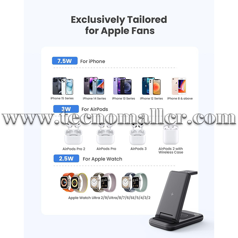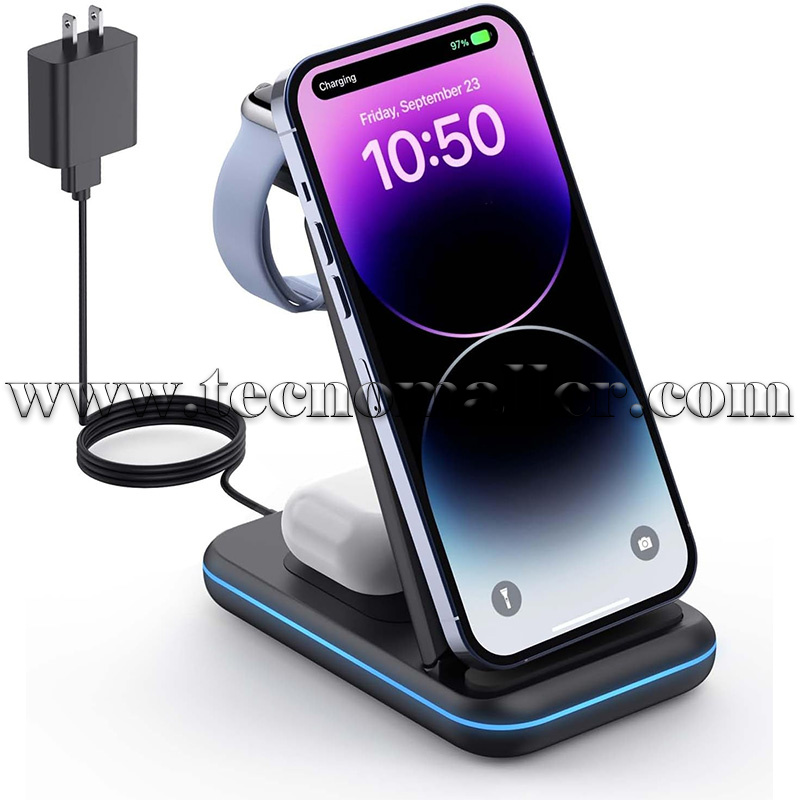 Estación de carga inalambrica plegable 3 en 1 para Teléfonos, iWatch y AirPods/Earbuds
