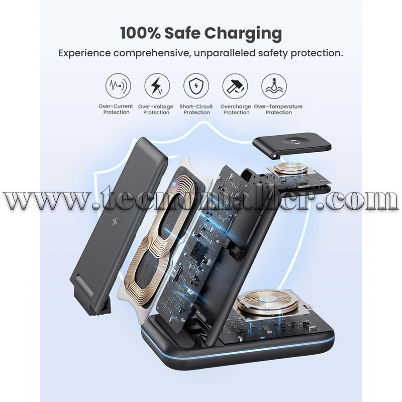 Carga sobre la marcha con facilidad: ¿planeas un viaje? No olvides empacar nuestra estación de carga para dispositivos Apple, que es plegable y ligera. Perfecto para tu hogar y oficina, este cargador inalámbrico es un cambio de juego para los viajeros. Ya no tendrás que preocuparte por llevar varios cargadores para tus dispositivos. Ya sea que estés de vacaciones o en un viaje de negocios, esta estación de carga para iPhone es tu compañero de viaje confiable