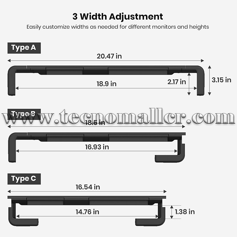 ✅ Soporte de monitor ajustable de 3 anchos: Este soporte para computadora es ajustable con 3 tipos de ancho: 16.5 pulgadas, 47 cm y 52 cm. Puedes ajustar su ancho como quieras, adecuado para diferentes monitores, y cuando quieras elevar la altura del monitor. ✅ Diseño ergonómico: Mantén tu monitor a un nivel cómodo de los ojos para evitar eficazmente la tensión de la espalda y el cuello cuando trabajas delante de una computadora. Y simplemente empuja tu teclado debajo del soporte para ahorrar más espacio. ✅ Resistente y estable: Este soporte para monitor está hecho de plataforma ABS y bisagra de metal, puede soportar fácilmente monitores de hasta 25 kilos, portátiles, impresoras, etc., sin tambalearse y la superficie no se cambiará dentro de su capacidad de peso. ✅ Organizador de escritorio inteligente: 1 soporte integrado para teléfono o tableta, 1 soporte para bolígrafo y 1 pequeño cajón de almacenamiento para un almacenamiento cómodo, viene en la mano cuando necesites usar inmediatamente tu teléfono, tableta y bolígrafo. Simplemente disfruta de una estación de trabajo ordenada ✅ Amplia aplicación: No solo se puede utilizar como soporte para monitor, también puede funcionar como soporte de impresora, soporte para computadora, soporte para laptop, soporte de TV o incluso estante de escritorio. |