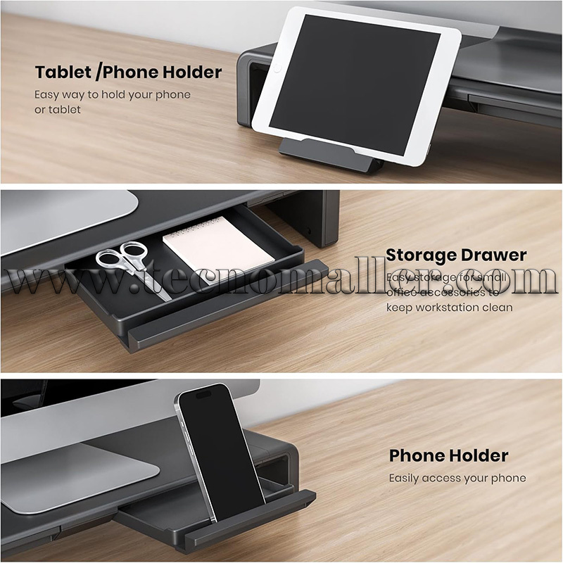 Base Soporte elevador para monitor plegable con claridad maximizada y cajón de almacenamiento
