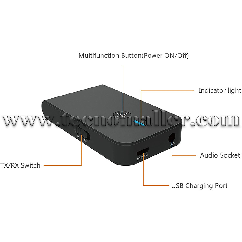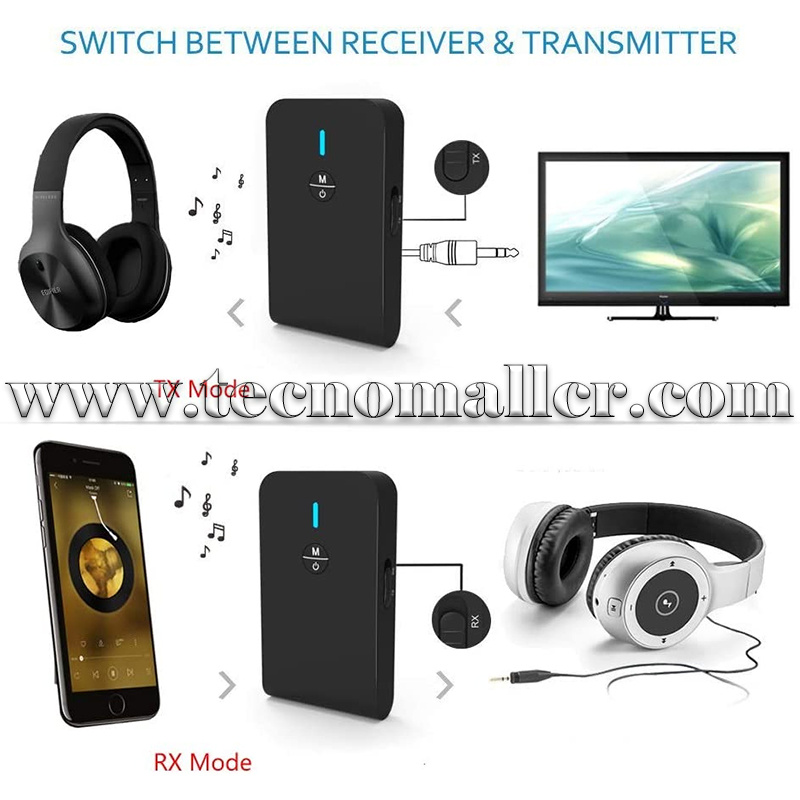 Bluetooth está en todas partes: en modo transmisor, convierte un televisor, PC, reproductor de CD, iPod, MP3/MP4 diferente de Bluetooth en un transmisor Bluetooth. Modo receptor: ideal para sistemas de sonido que transmiten música en casa o en el vehículo