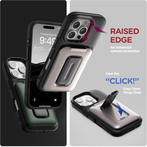Soporte seguro para tarjetas: esta funda incluye un tarjetero seguro en la parte posterior que tiene capacidad para hasta 2 tarjetas. El mecanismo de fácil deslizamiento permite un acceso cómodo, por lo que es fácil de abrir y cerrar con un solo empuje. Simplifica tu vida con este práctico estuche para tarjetas.