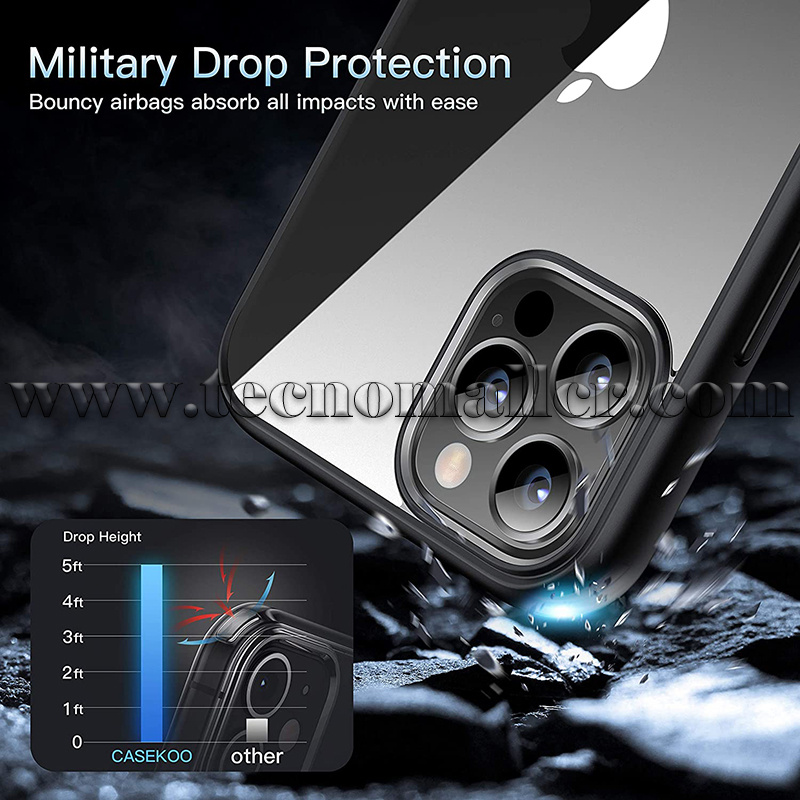 iPhone 12 Pro Max CASEKOO Estuche transparente-negro no amarillento, antigolpes de grado militar