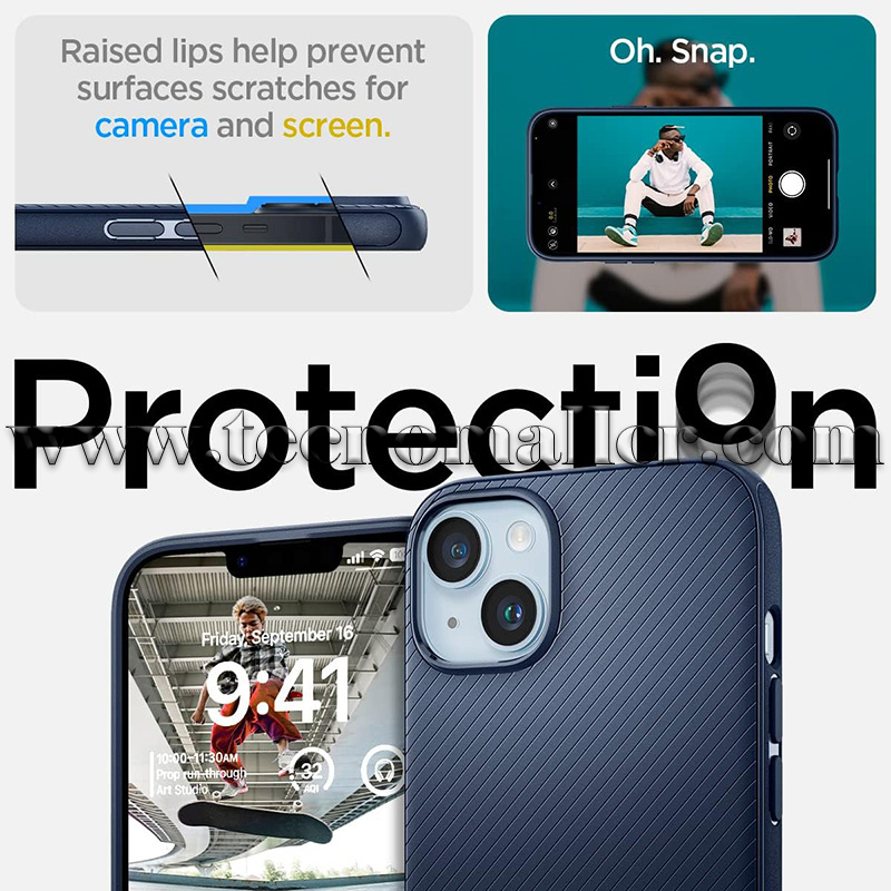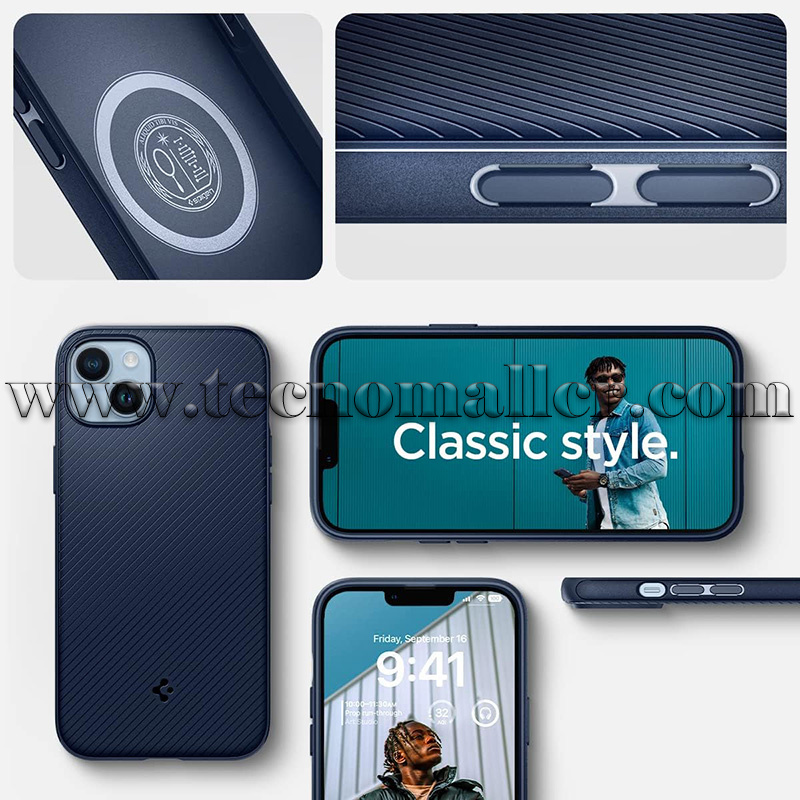 iPhone 14+/15+ estuche Spigen Mag Armor MagFit protector delgado compatible con MagSafe
