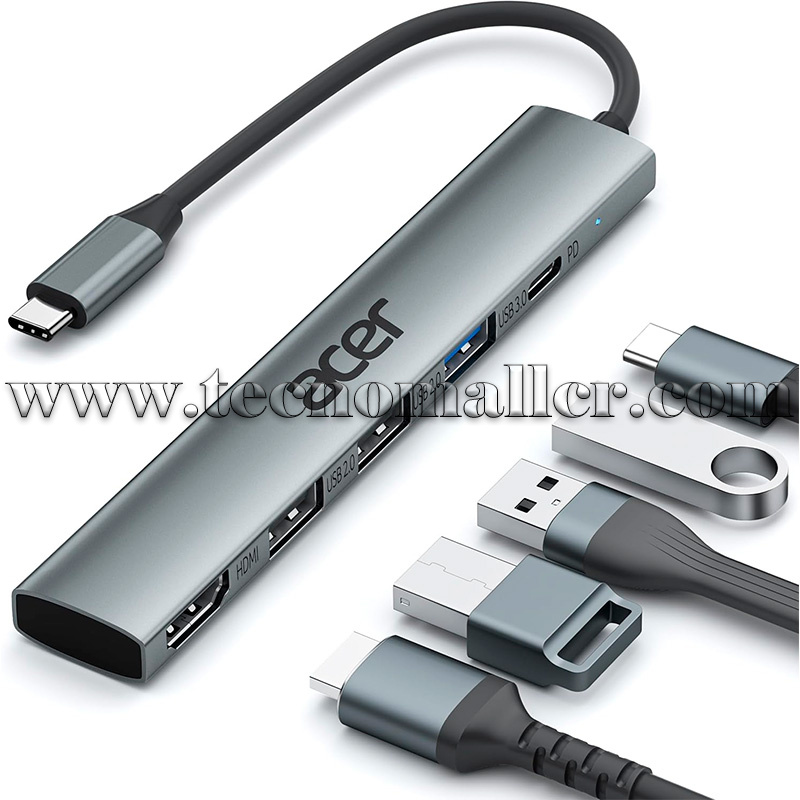 Acer adaptador multipuerto Hub USB C 5 en 1 con un HDMI, USB C para energía PD 100 W y 3 USB A