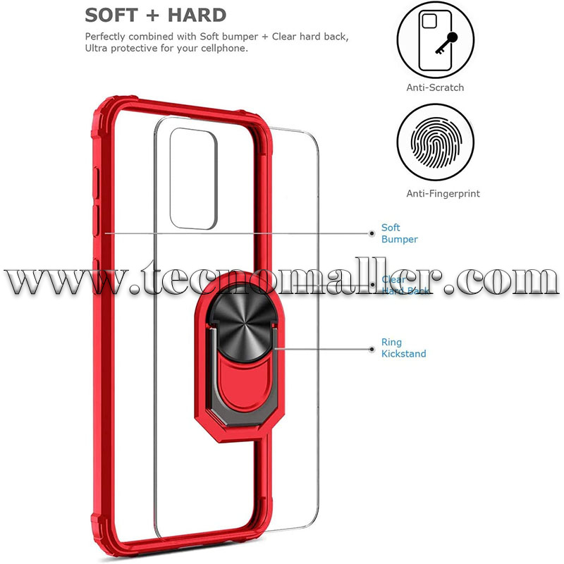 Función de soporte + montaje magnético para el coche: El soporte de anillo integrado en la parte posterior es giratorio de 360 grados, muy conveniente para la visualización de manos libres multiángulo, incluyendo visualización horizontal o vertical. El metal en el centro de la parte trasera permite que esta funda se fije firmemente al soporte magnético del coche (no se incluye el soporte magnético para el coche).