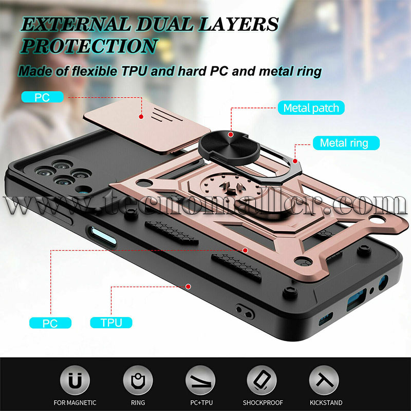 Samsung Galaxy A22 4G funda hibrida con anillo y proteccion para camara