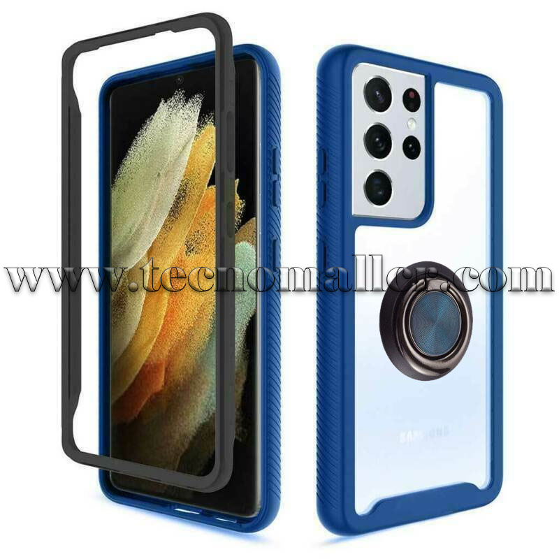 Samsung Galaxy S22 Ultra estuche 3 en 1 transparente antigolpes con anillo