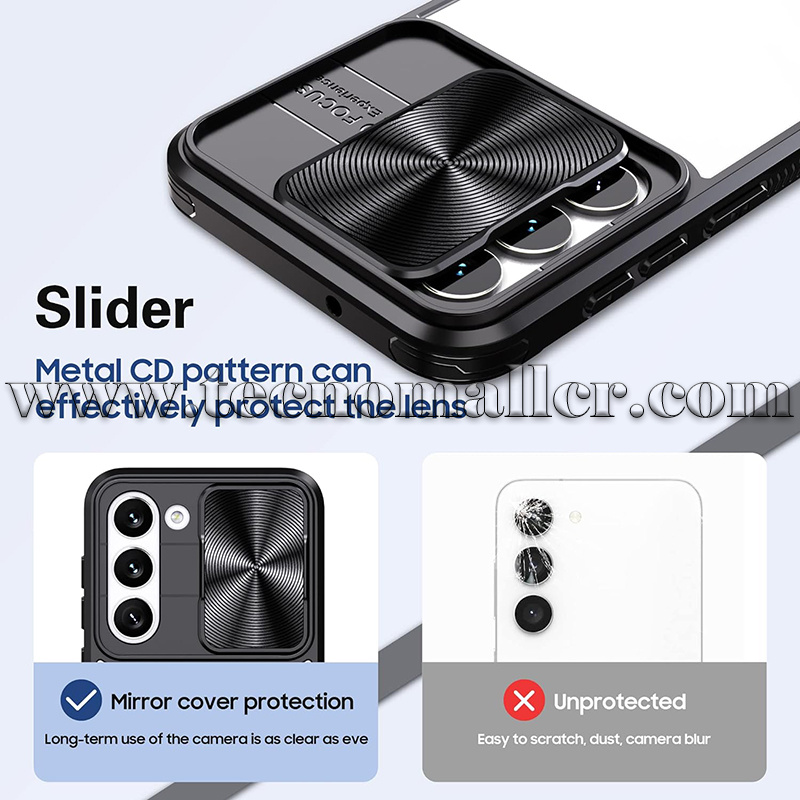 Cubierta de lente de cámara deslizante: Este protector de lente de cámara deslizante mejorado y borde elevado alrededor de la cámara, puede proteger la cámara del teléfono de arañazos y colisiones con función antiapertura. Puedes deslizarte fácilmente a la izquierda y a la derecha para proteger tu cámara y privacidad. Bloqueo ligero en cada lado, no se desliza al azar.