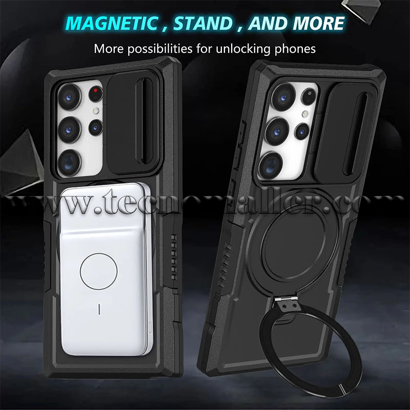 Samsung Galaxy S24 Ultra estuche antigolpes con soporte compatible Magsafe y protector de cámara