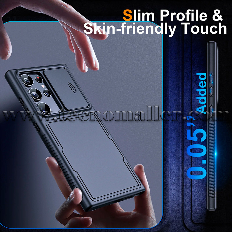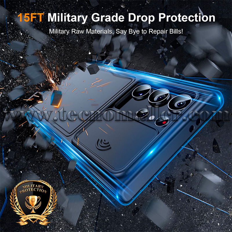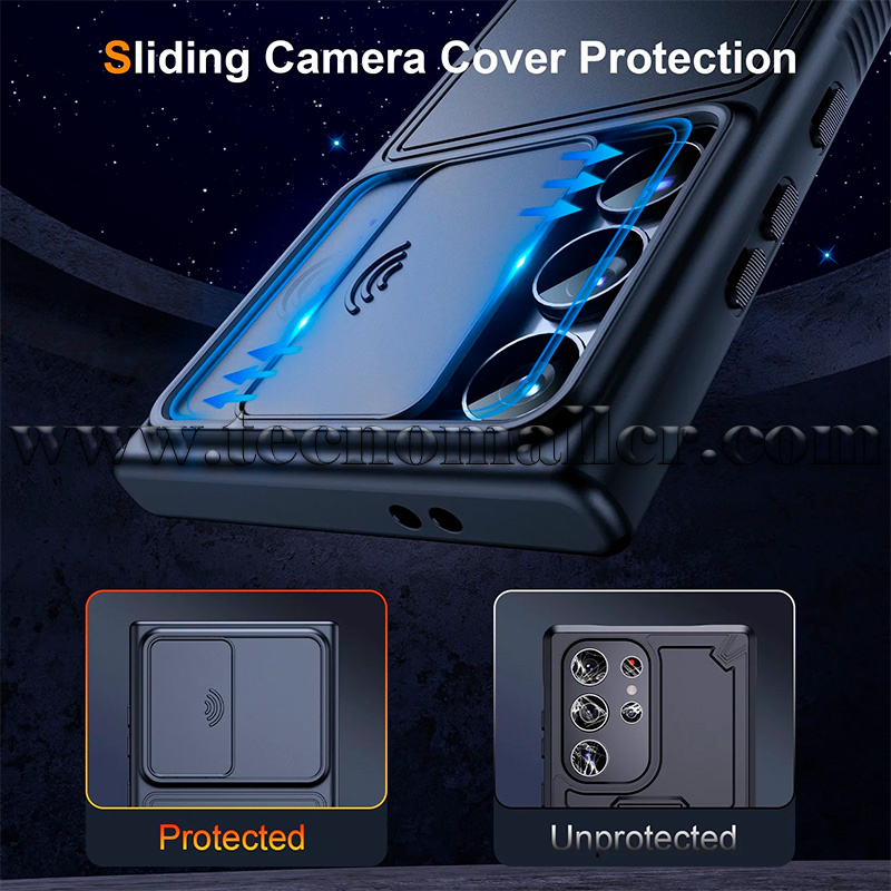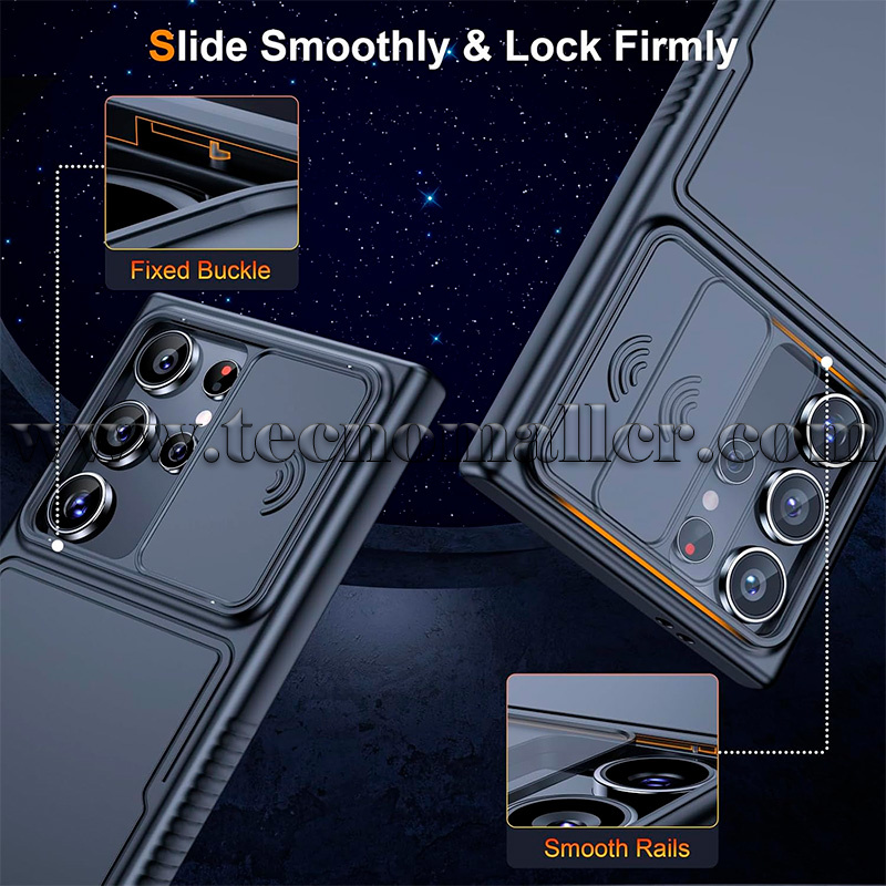 Funda deslizante mejorada para cámara:La guía mejorada de doble ranura con rodamiento de bolas se desliza más suavemente, mientras que la tapa deslizante de la lente mejora la privacidad y evita que tu privacidad se filtre. Con una cubierta de cámara deslizante mejorada y bordes elevados de 0.098" alrededor de la lente, esta funda ofrece doble protección para la lente del teléfono.