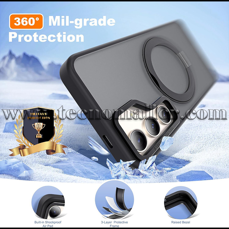 Samsung Galaxy S24/S25 estuche antigolpes con anillo giratorio 360° compatible Magsafe translúcido mate