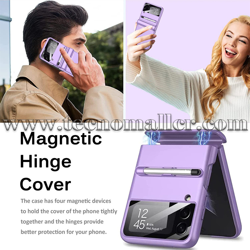 Samsung Galaxy Z Flip 4 funda con protección de bisagra magnética, antigolpes y soporte para boligrafo