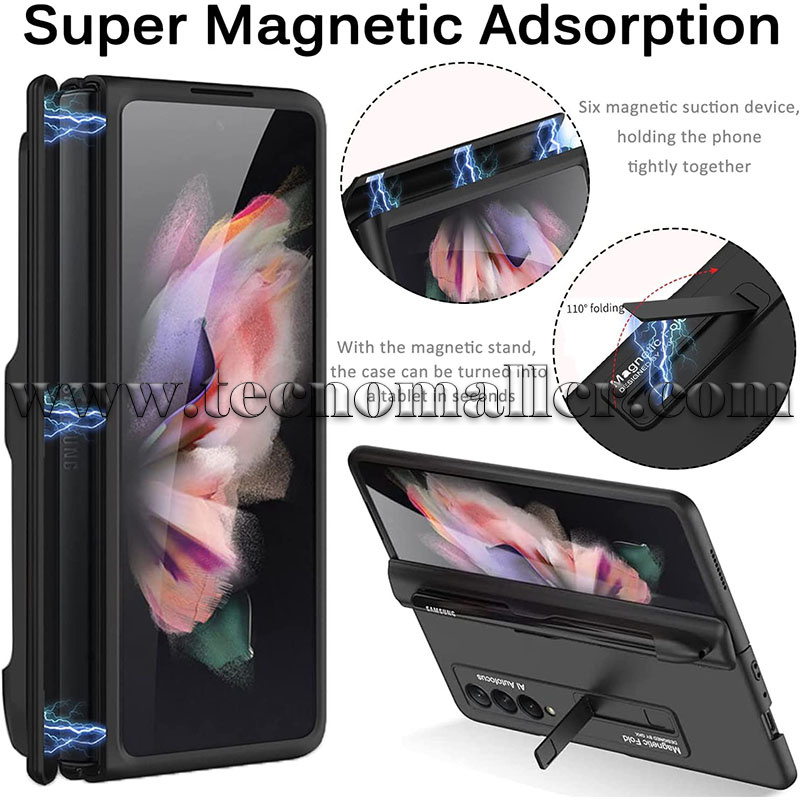 Absorción súper magnética: la funda para Samsung Galaxy Z Fold 3 con soporte para bolígrafo tiene seis dispositivos de succión magnética, sujetando las cubiertas superiores e inferiores del teléfono firmemente junto con la fuerte tecnología de absorción de campo magnético y la bisagra todo incluido. La potente absorción magnética hace que la funda del teléfono esté perfectamente conectada, lo que siempre hace que tu teléfono destaque entre la multitud.