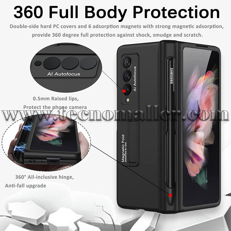 Samsung Galaxy Z Fold 3 estuche con protección de bisagra, soporte y ranura para S Pen