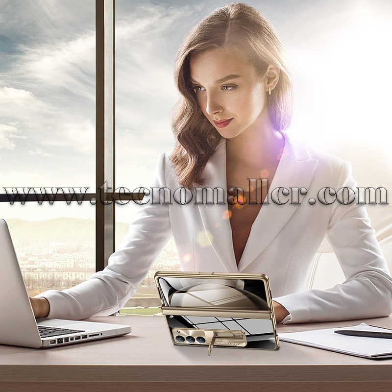 Diseño de bisagra ultrafina y soporte de resorte: (1). Funda para Samsung Galaxy Fold 5 con diseño mejorado de protección de bisagra. La bisagra es más delgada, el diseño de apertura y cierre de resorte, se ajusta, evita la entrada de polvo, y el diseño de bisagra delgada aumenta la comodidad de sostener. (2) La parte posterior de esta funda para Samsung Fold 5 tiene un soporte resistente para funciones de apertura y cierre fáciles y rápidas mientras mantiene el teléfono en modo horizontal con el mejor ángulo de visión.