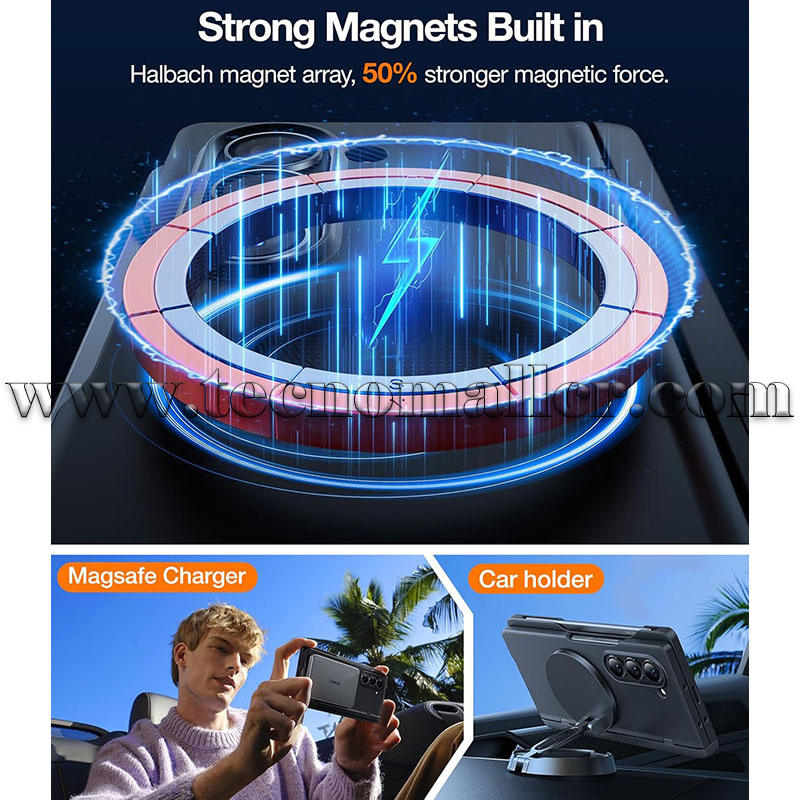 Bloquea tu cargador firmemente: la funda Z Fold 6 MagSafe cuenta con un anillo magnético integrado de 2ª generación que se alinea perfectamente y se bloquea en su lugar, asegurando una compatibilidad impecable con los accesorios MagSafe. Aunque el Z Fold 6 no tiene capacidades magnéticas integradas, aún puedes disfrutar usando accesorios magnéticos con esta innovadora funda magnética Z Fold 6
