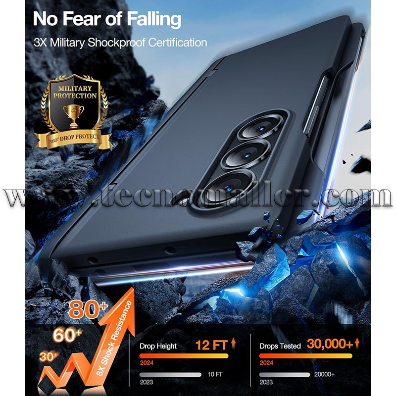 Más resistente que nunca: construida con una cubierta a prueba de golpes para la bisagra, un parachoques fuerte con una estructura de amortiguación de 3 capas en los bordes y biseles elevados para la pantalla y la cámara, esta funda para Samsung Z Fold 6 está probada para superar los estándares de protección militar y ha ganado la certificación oficial, dándote más confianza que nunca