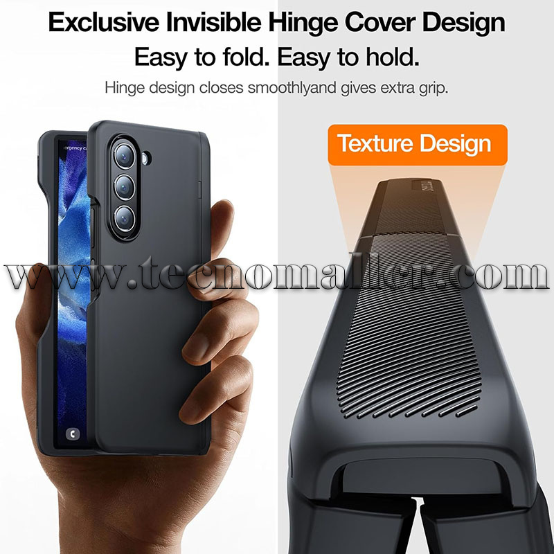 Agarre seguro y diseño sin preocupaciones: con un revestimiento nano oleofóbico mejorado en la parte posterior y los bordes, la funda Samsung Fold 6 ofrece un tacto suave y sedoso y agradable al tacto. La superficie texturizada en la cubierta de la bisagra garantiza un agarre seguro. El soporte integrado, perfectamente incorporado en la cubierta de la bisagra, se mantiene plano para mantener un perfil elegante. La cubierta frontal, con puntos elevados en el interior, se fija de forma fácil y segura sin adhesivo.