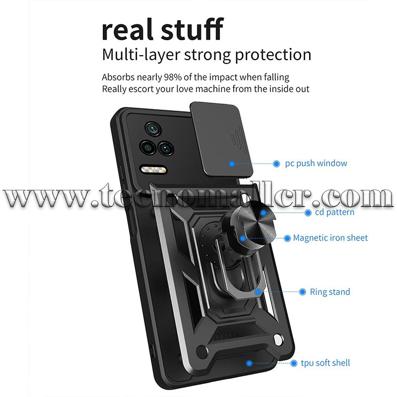 Poco F4 funda hibrida con anillo y proteccion para camara