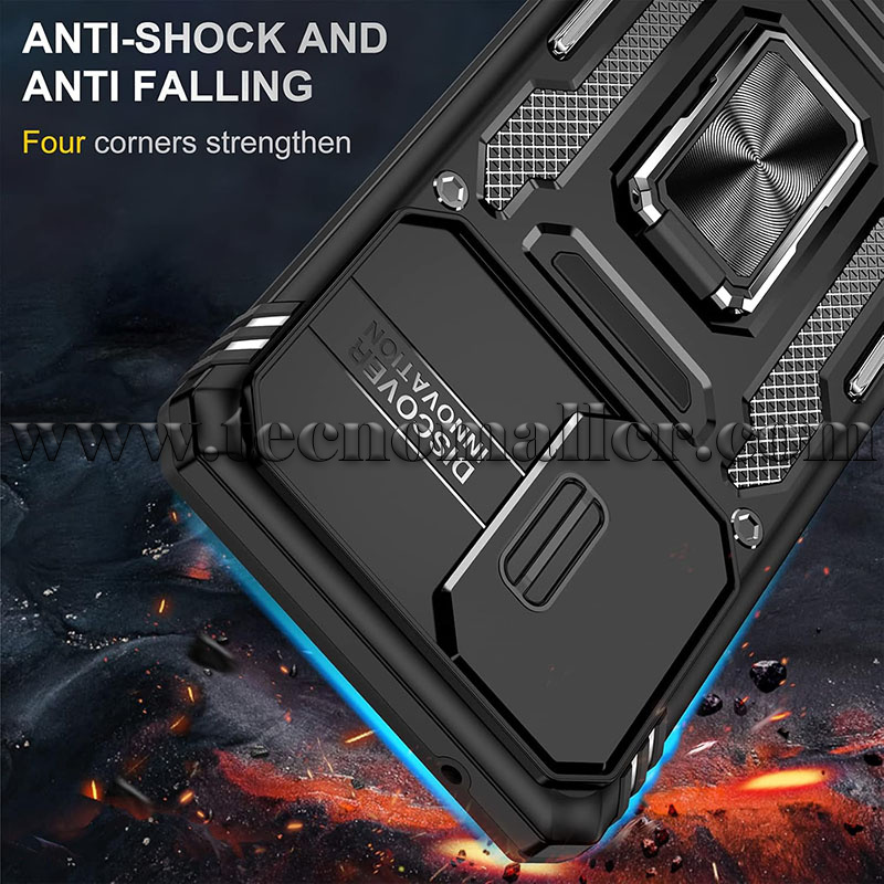 Protección de cámara dual: la protección de doble cámara significa un borde elevado de 3 mm alrededor de la lente de la cámara de tu teléfono y una cubierta deslizante para la cámara. La cubierta de la cámara de esta funda ha implementado específicamente un deslizamiento de rodamientos de bolas para reducir la fricción, lo que permite una experiencia de deslizamiento suave al tomar fotos y prolongar su vida útil. Además, esta funda para cámara tiene un buen cierre cuando se cierra para que no se deslice fácilmente.