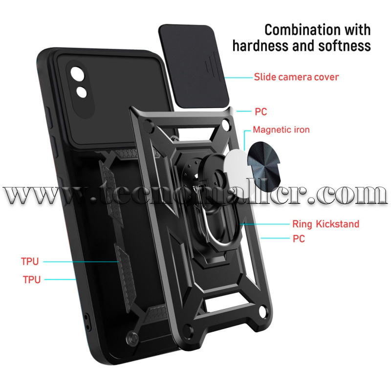 Redmi 9A funda hibrida con anillo y proteccion para camara