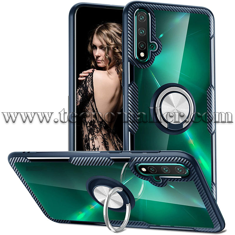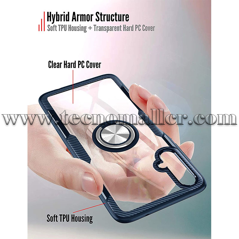 Redmi 9T estuche policarbonato transparente y fibra de carbono con anillo metalico