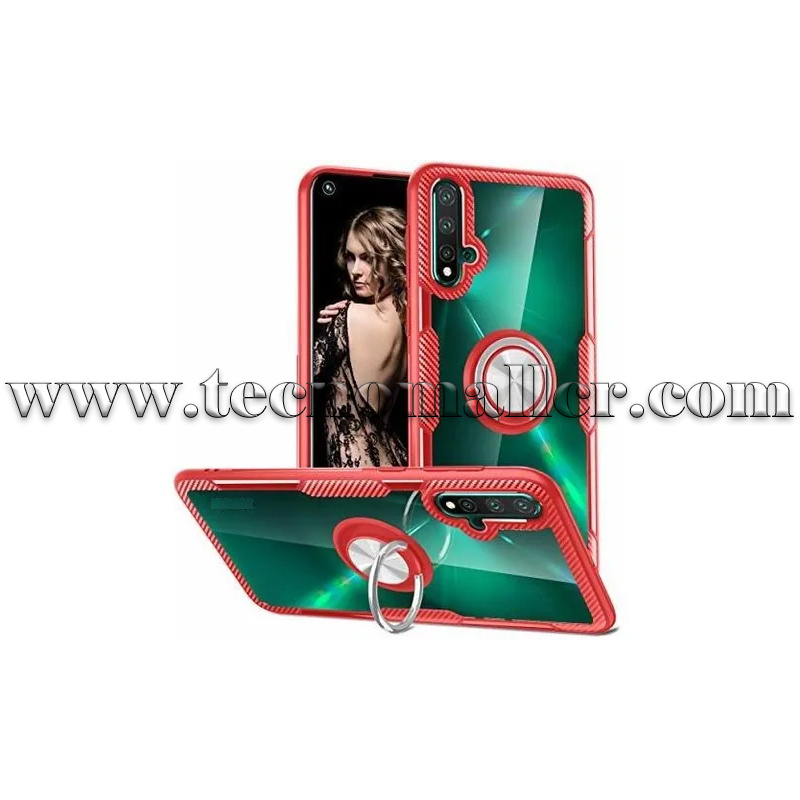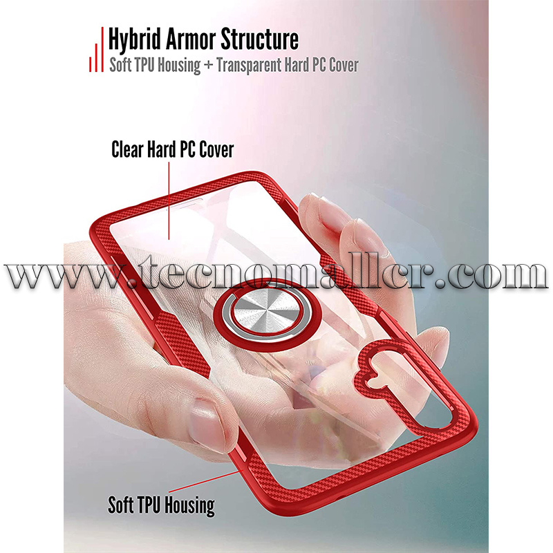 Redmi 9T estuche policarbonato transparente y fibra de carbono con anillo metalico