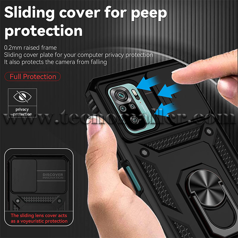 Diseño deslizante de lente de cámara: delicada cubierta deslizante de cámara, más alta que la lente elevada, proporcionando protección de lente premium. Los biseles elevados alrededor de la pantalla ayudan a proteger contra arañazos.