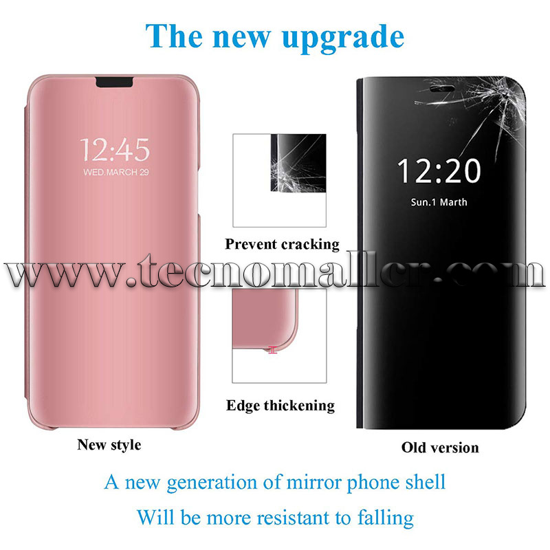 Funda de espejo de lujo delgada con tapa que puede ser brillante chapado en espejo de maquillaje. La funda de espejo está hecha de policarbonato duro y piel sintética suave. Diseño único que permite un fácil acceso a todos los botones, controles y puertos sin tener que quitar el teléfono.