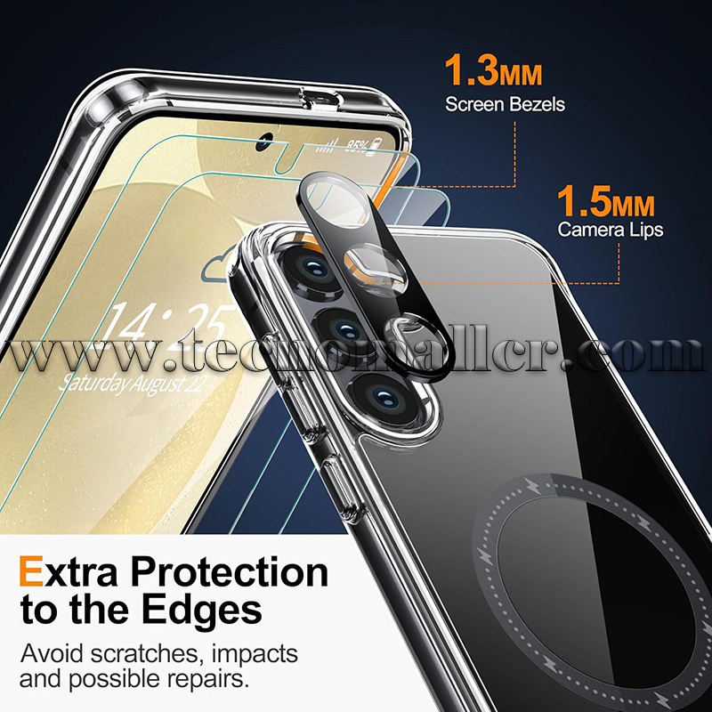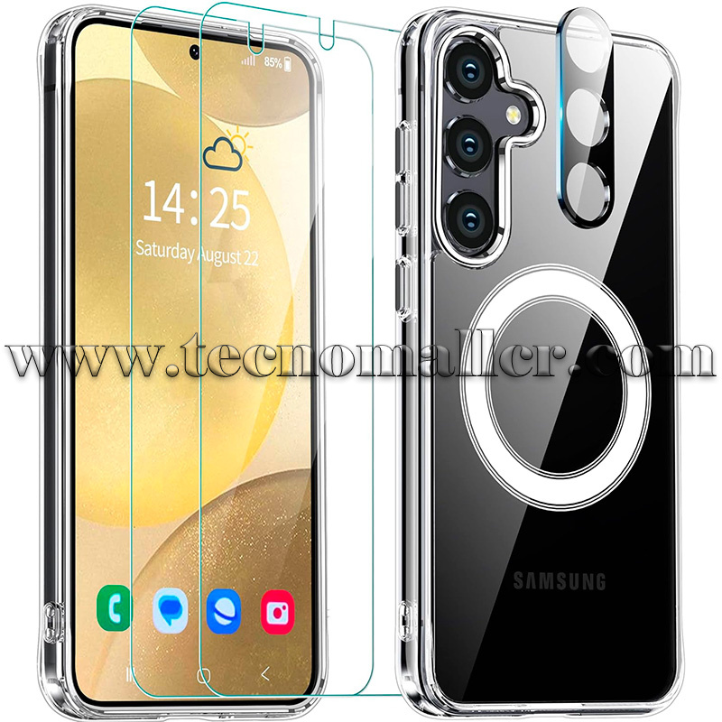 Samsung Galaxy S24+/S25+ estuche transparente antigolpes con Magsafe + protector de pantalla y cámara