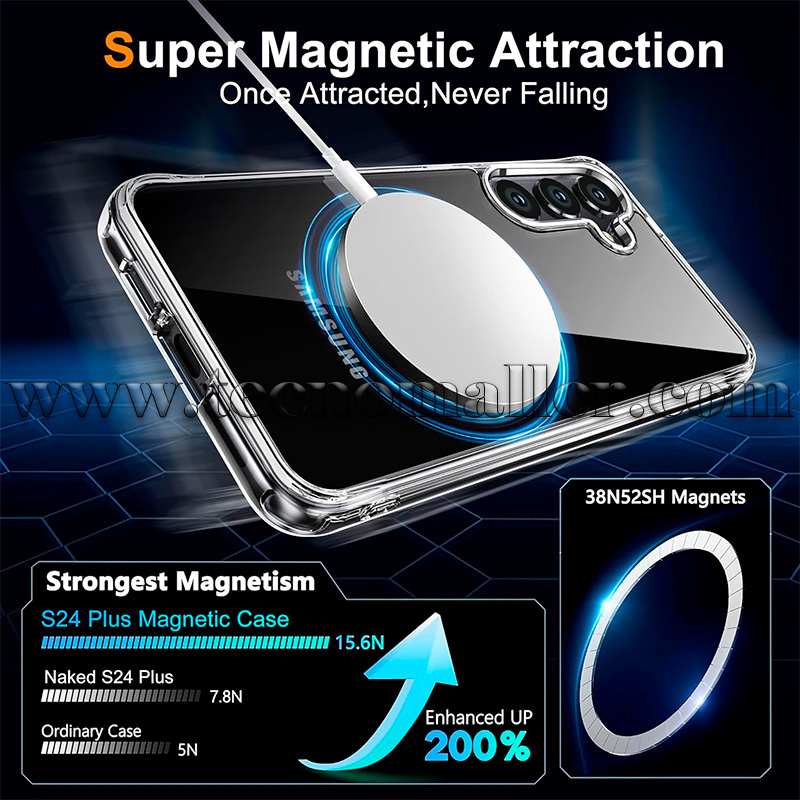 Compatible con accesorios MagSafe: esta funda magnética está especialmente diseñada para Samsung Galaxy S24 Plus. Se alineará automáticamente con el cargador Mag Safe para una experiencia de velocidad de carga impecable sin tener que quitar la funda. Puedes utilizar fácilmente accesorios MagSafe como soportes de automóvil, carteras, cargadores y más.