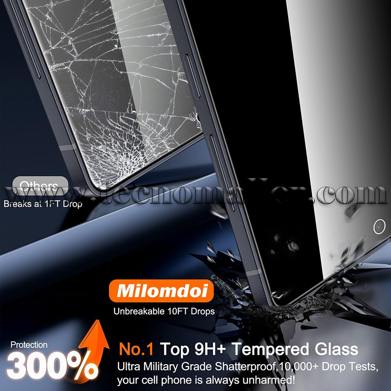 Proporciona la protección más fuerte: las películas templadas de privacidad ordinarias en el mercado son propensas a romperse. El vidrio de privacidad de está fabricado con vidrio de grado aeroespacial y fusiona nano-cerámica en el protector de vidrio, proporcionando una protección 8 veces más fuerte que el vidrio normal para una resistencia superior a los daños causados por arañazos, golpes y caídas en el uso diario. Al invertir en este protector de privacidad de alta calidad, puedes evitar costosas reparaciones o reemplazos de pantalla