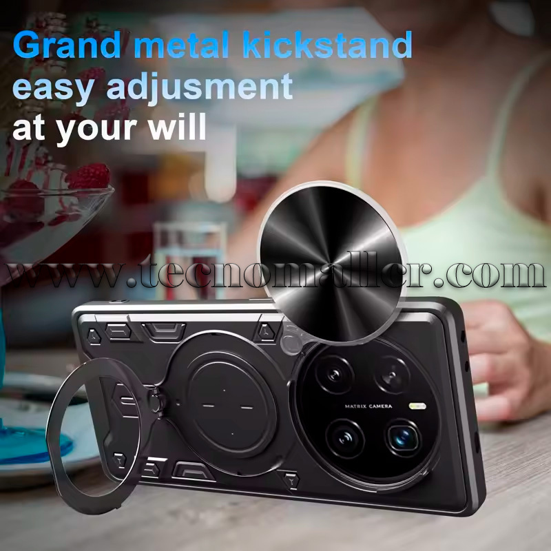El soporte de 360° está montado en la parte posterior y tiene una variedad de ángulos ajustables (360° horizontalmente y 110° verticalmente), lo que te permite sostener tu teléfono de forma más segura y fácil para una experiencia de visualización cómoda.